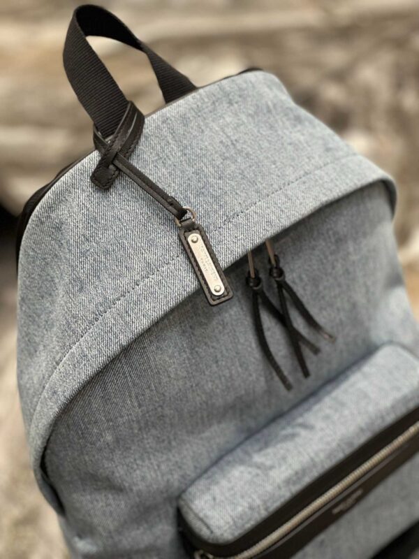 - Light-blue cotton City denim backpack from SAINT LAURENT featuring raw denim