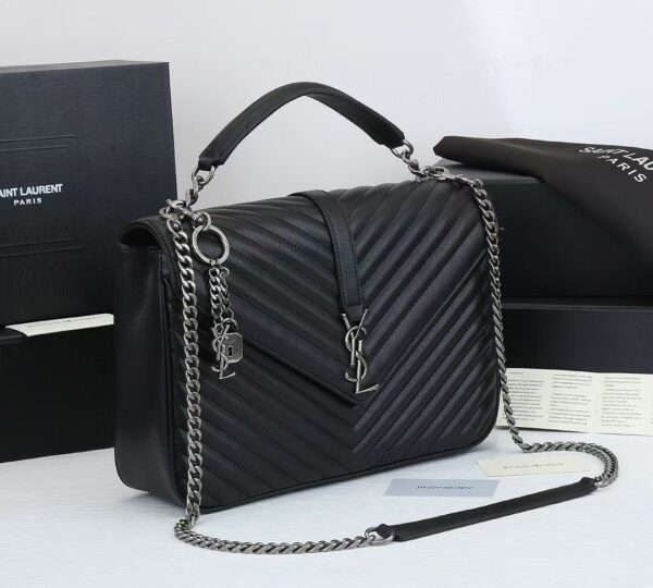 SAINT LAURENT COLLEGE LARGE CHAIN BAG BLACK TONE HARDWARE 32CM