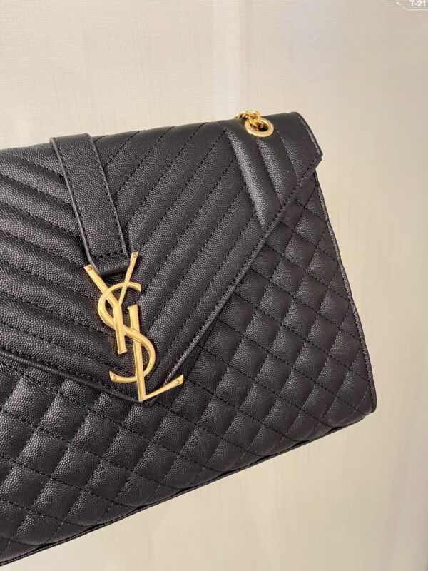 SAINT LAURENT ENVELOPE LARGE BAG IN MIX MATELASSÉ GRAIN DE POUDRE EMBOSSED BLACK GOLD 31CM 600166BOW911000