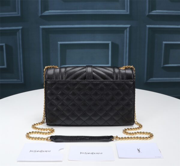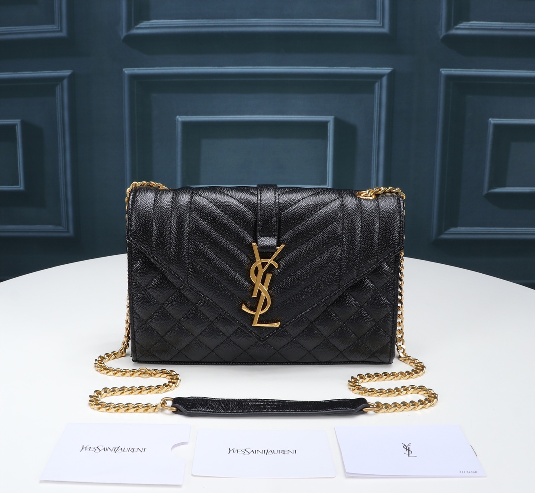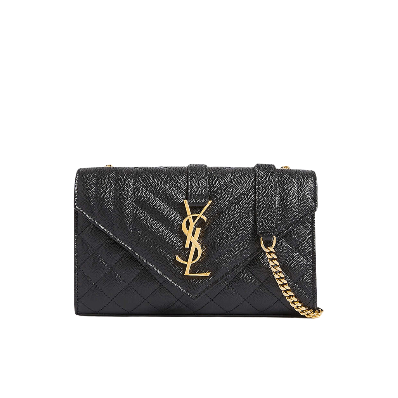 SAINT LAURENT ENVELOPE SMALL BAG IN MIX MATELASSÉ GRAIN DE POUDRE EMBOSSED BLACK GOLD 21CM 600195BOW911000
