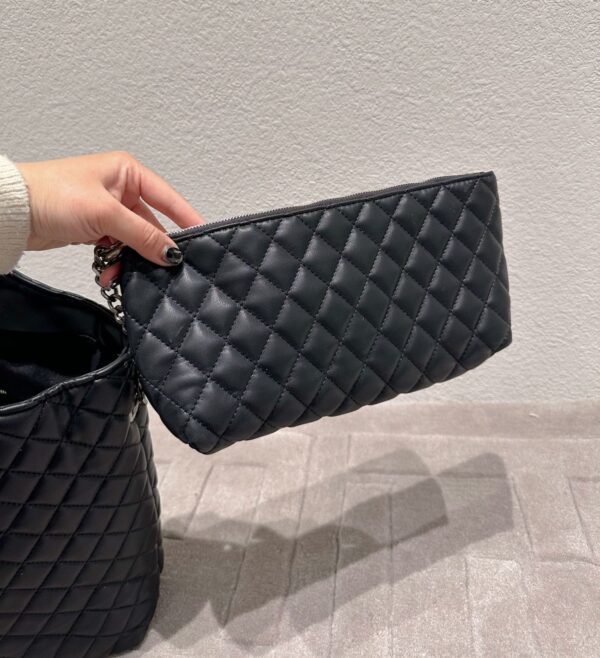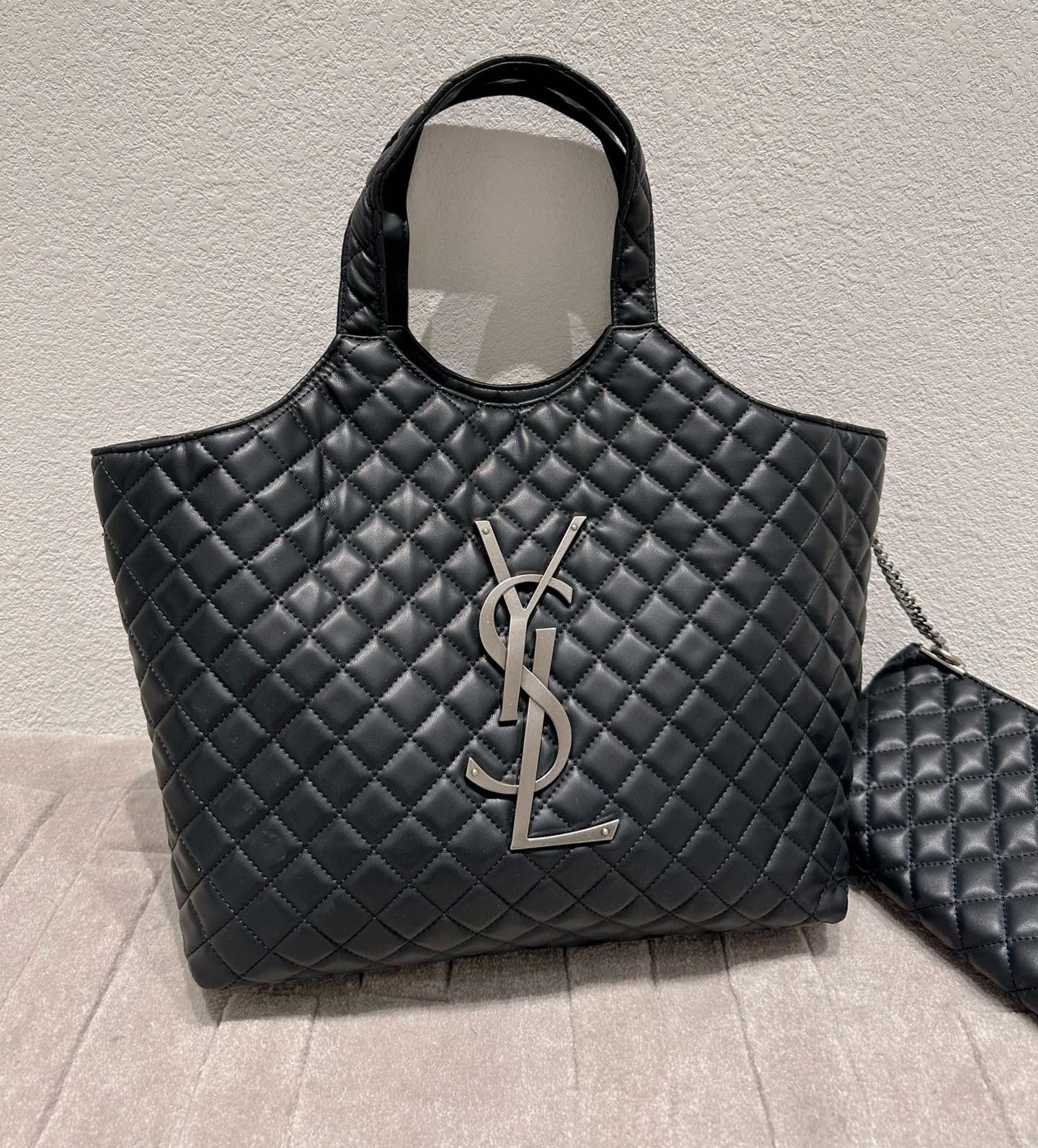 SAINT LAURENT ICARE SHOPPING BAG IN QUILTED BLACK SILVER 40CM