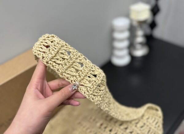 SAINT LAURENT LE 5 A 7 IN RAFFIA CROCHET AND SMOOTH LEATHER BEIGE 32CM 690941GAAAR2080