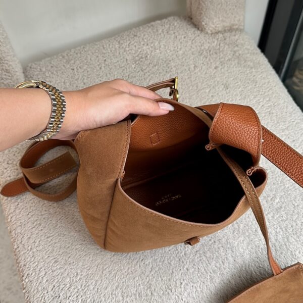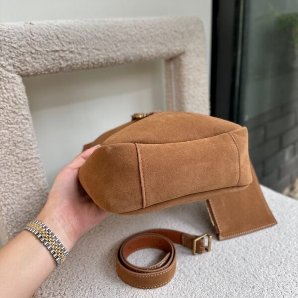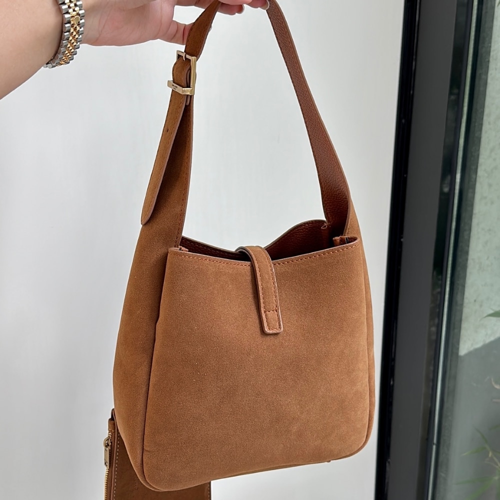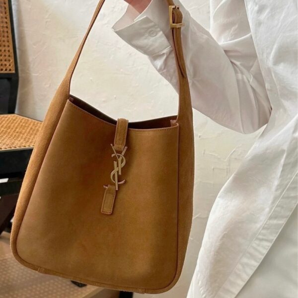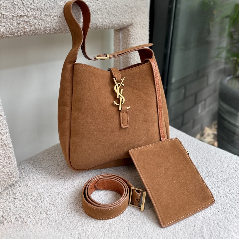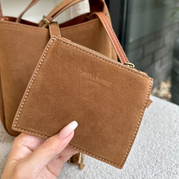 SAINT LAURENT LE 5 À 7 SUPPLE IN SUEDE GOLDEN BROWN 24CM