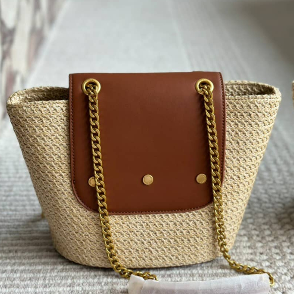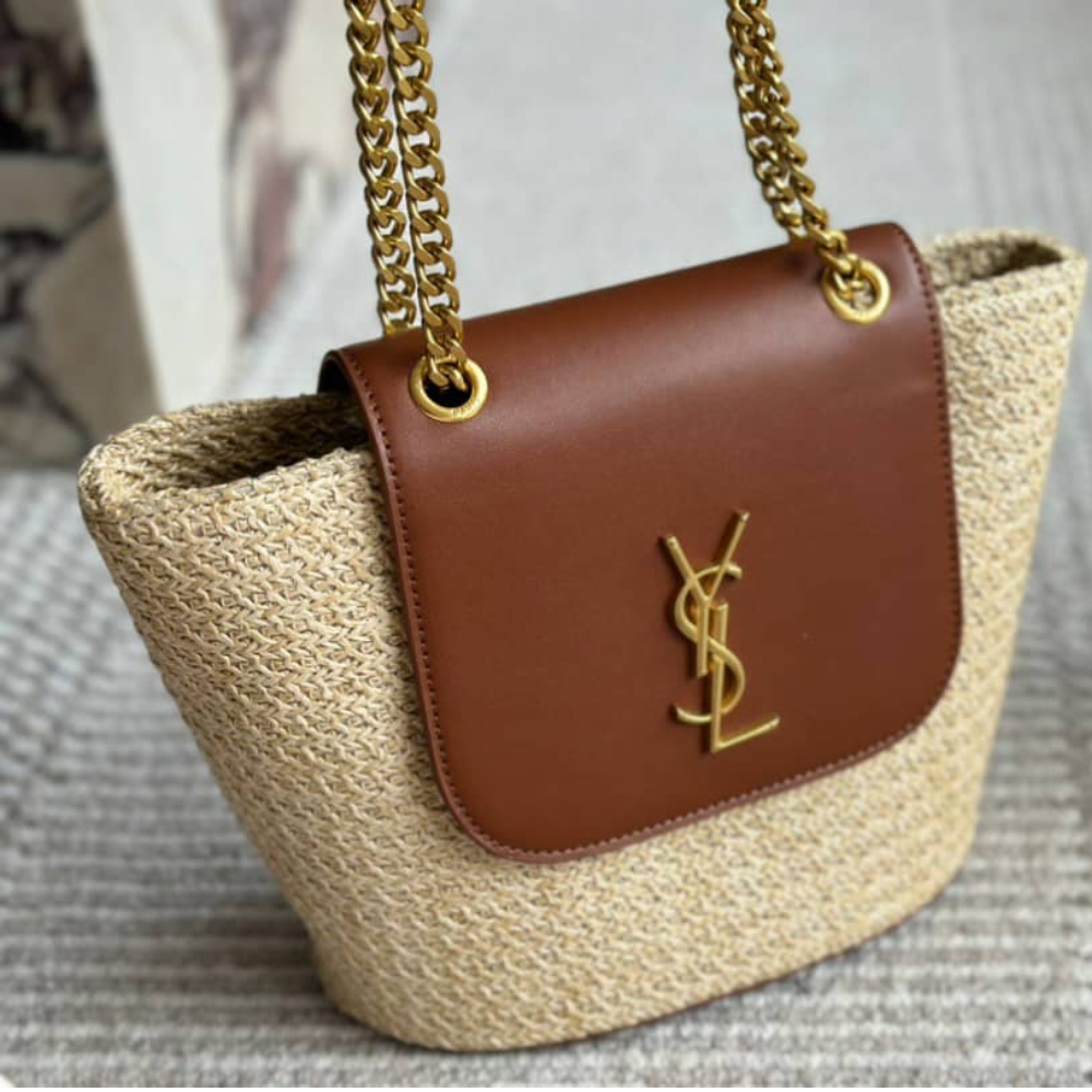 Saint Laurent//Mini Manon In Raffia And Aged Vegetable Tanned Leather//Naturel//23cm//774269GAAED9051