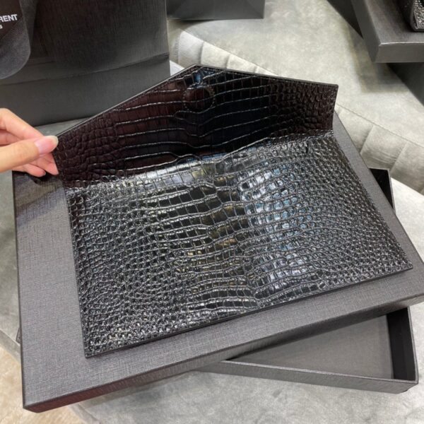 Saint Laurent Uptown Pouch In Crocodile Embossed Shiny Leather Gold Black 565739DND0J1000 / 27cm / 10.6 inches