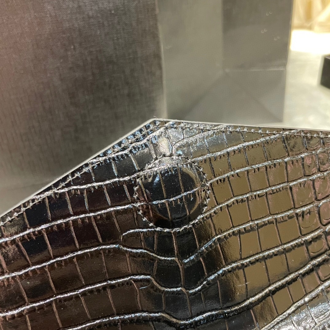 SAINT LAURENT UPTOWN POUCH IN CROCODILE EMBOSSED SHINY LEATHER SILVER BLACK 27CM 565739DND0N1000