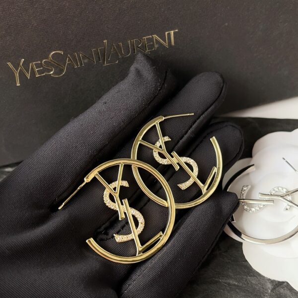 Saint Laurent YSL Hoop Earrings With Crystal Gold