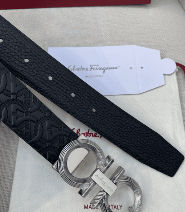SALVATORE FERRAGAMO GANCINI BLACK LEATHER BELT WITH SILVER METAL BUCKLE