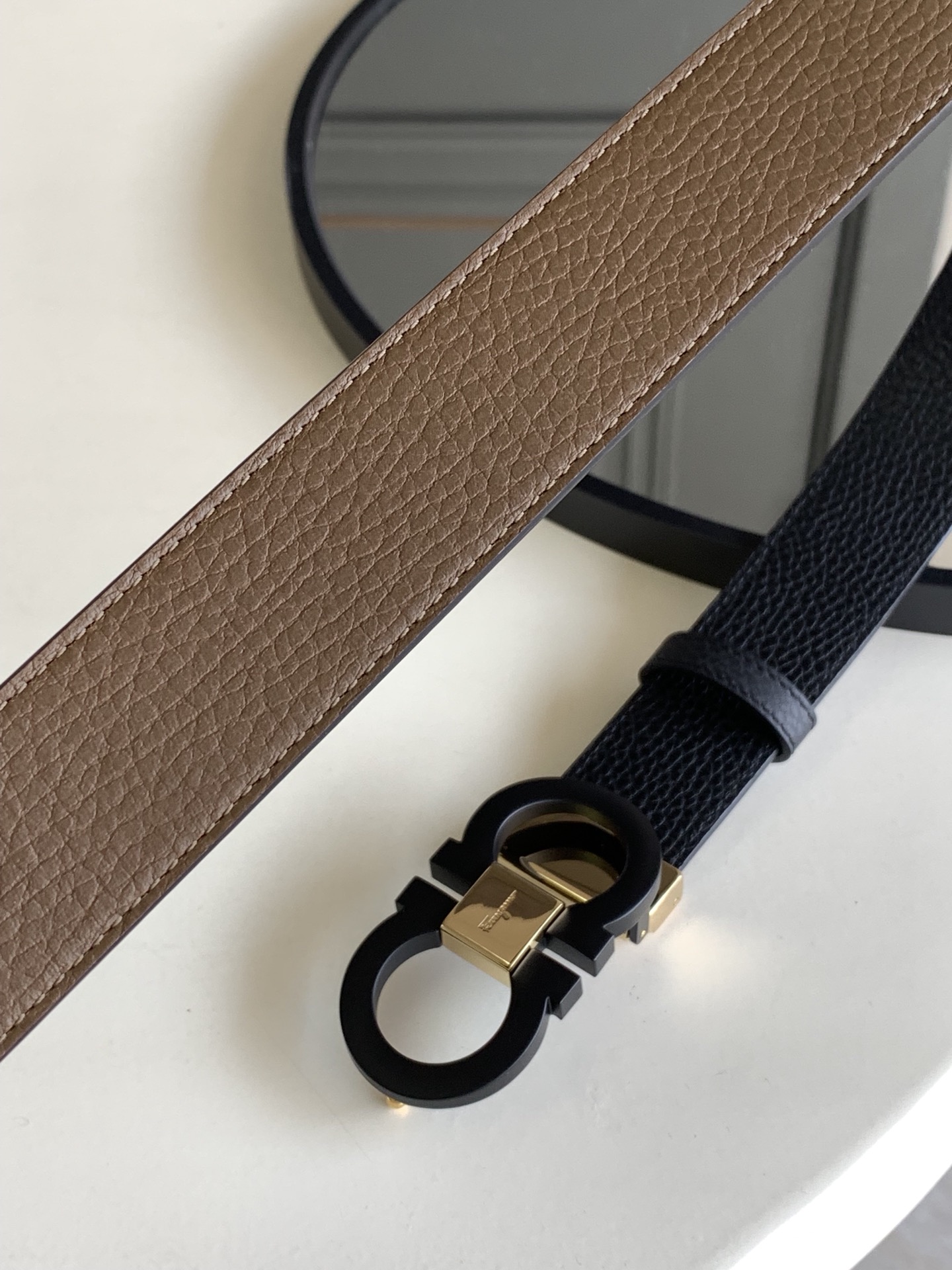 SALVATORE FERRAGAMO REVERSIBLE AND GANCINI BELT BLACK 3.5CM