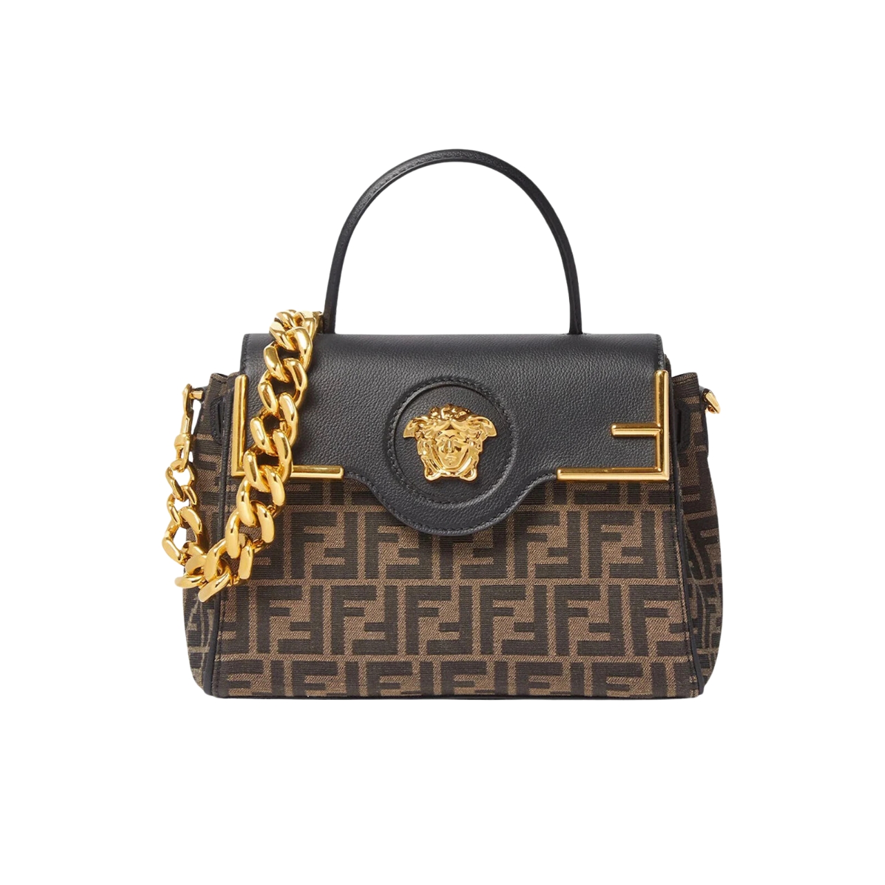 VERSACE X FENDI FENDACE LA MEDUSA MEDIUM HANDBAG BROWN